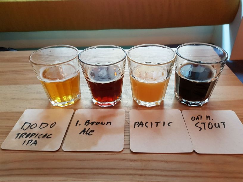 Kävimme myös Artezanin pubissa maistamassa heidän tuottamia juomiaan. Heiltä oli mahdollisuus ostaa 4 oluen maistelulautasia n. 5,50€ hintaan. Hanasta löytyi 8 erilaista olutta, joten oli aika selvää, että kaikkia kahdeksaa piti maistaa pienet lasilliset. Panimon päätuotteena tuntui olevan erilaiset Pale Alet, ja niissä vahvasti esillä toki IPA:t. Oluet olivat kauttaaltaan hyvin pehmeitä ja makeahkoja. Raikkautta löytyi myös, eivätkä IPA:t katkerolla kikkailleet. Kokonaisuutena tarjooma oli varsin suoraviivaista, eikä mitään suuria riskejä oltu missään oluessa otettu. Hedelmäisyydellään minua kuitenkin ihastutti Pacific Pale Ale, joka vei minut makumaailmoissa suoraan Hawaiille ananasta nauttimaan.